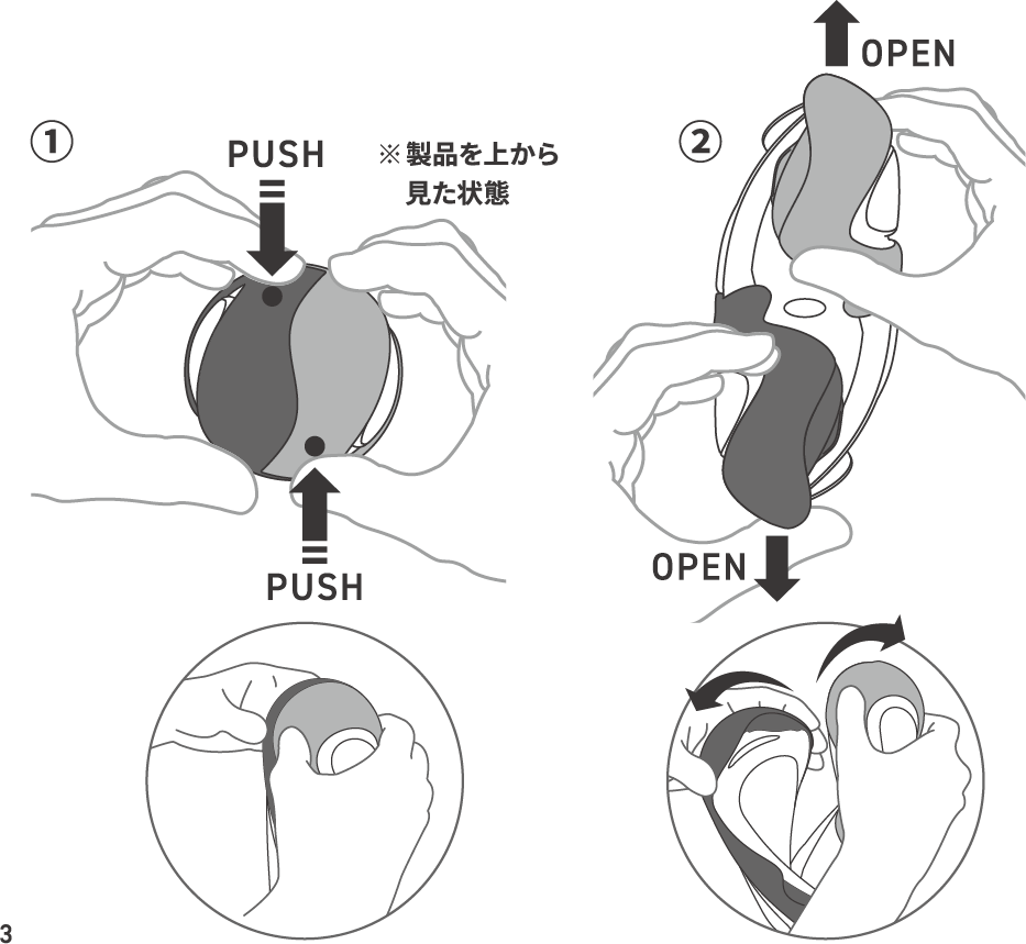 Push the upper side of the Product Body in the direction of the arrows to open.