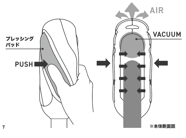 After insertion, you can use the Pressure Pads to manually stimulate 360° of any area and control the pressure, or squeeze out the internal air to create strong vacuum suction.